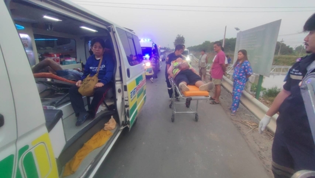 เมื่อเวลา 07.00 น. วันที่ 23 ก.พ. 69 ที่จ.ปทุมธานี พ.ต.ต.ก้องกิดากร ครามแสง สารวัตรสอบสวน สภ.คลองห้า ได้รับแจ้งอุบัติเหตุรถตู้เสียหลักชนแท่งแบริเออร์ มีผู้ได้รับบาดเจ็บหลายราย บริเวณถนนเลียบคลองระพีพัฒน์ หมู่ 14 ต.คลองหก อ.คลองหลวง จ.ปทุมธานี จึงรุดไปที่เกิดเหตุ พร้อมด้วยอาสามูลนิธิป่อเต็กตึ๊ง และรถกู้ชีพโรงพยาบาลคลองหลวง