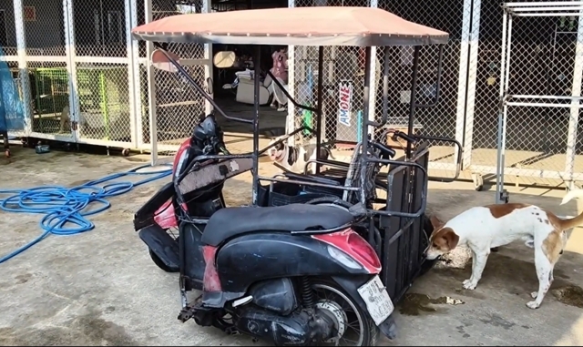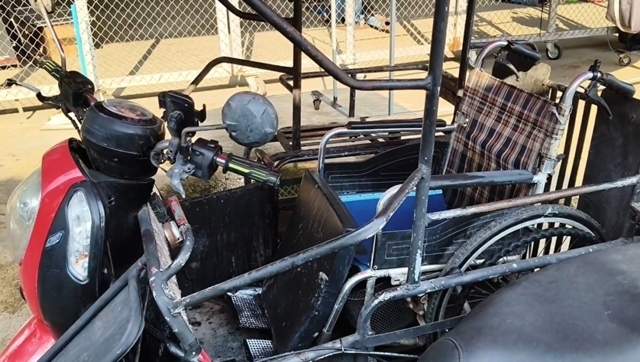โดยกำนันอาร์ทได้พาผู้สื่อข่าวไปดูพื้นที่เกิดเหตุ ซึ่งอยู่บริเวณคลองบางงู หมู่ 6 ต.เจ็ดเสมียน ใกล้ศาลพ่อปู่ปักเซ สิ่งศักดิ์สิทธิ์ที่ชาวบ้านเคารพนับถือ พบรถจักรยานยนต์ดัดแปลงเป็นสามล้อมีหลังคาสีแดง ยี่ห้อ Yamaha Fino ทะเบียน ขยร-498 อุดรธานี จอดอยู่ในที่เกิดเหตุ สภาพล้อหน้าแตก และมีการติดตั้งวีลแชร์เป็นที่นั่งคนขับ นอกจากนี้ยังพบสายรัดนิรภัยสีดำ และถุงพลาสติกของผู้พิการจมอยู่ในคลอง