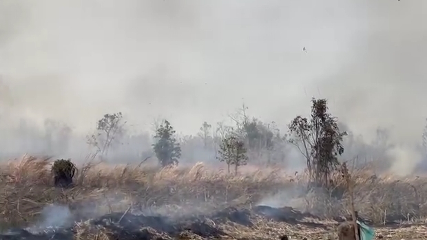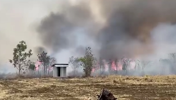 เพจ Army Military Force รายงานว่า เวลา 15:35น. (24 ก.พ. 2569) สถานการณ์ไฟป่าบริเวณชายแดนวิกฤตหนัก หลังทหารกัมพูชาจุดไฟเผาป่าหวังใช้กลุ่มควันและเปลวเพลิงก่อกวนทหารไทยในพื้นที่แนวหน้าเหมือนเช่นเคย แต่กลับเกิดเหตุไม่คาดคิด เมื่อกระแสลมเปลี่ยนทิศกะทันหันพัดพาเปลวไฟย้อนกลับเข้าหาฝั่งกัมพูชาอย่างรุนแรง
