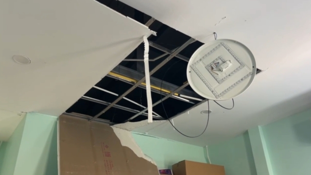 เช่นเดียวกับบ้านของนางสุขิตรา อายุ 58 ปีครูโรงเรียนเมืองสุรินทร์ ก็ได้รับความเสียหายขอบหน้าต่างร้าวหลอดไฟร่วงหลุดจากเพดานด้วยเช่นกัน