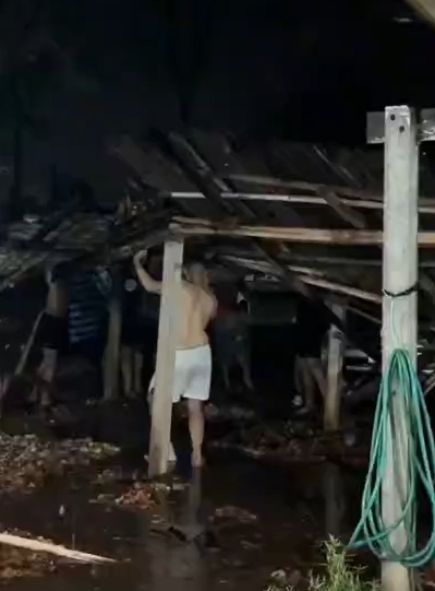 เจ้าหน้าที่ และผู้พักอาศัยจึงช่วยกันยกโครงหลังคาที่พังออก เพื่อเคลื่อนย้ายรถออกจากจุดเสี่ยง โดยมีผู้ใช้ TikTok ชื่อบัญชี@yamroll0852 บันทึกคลิปเหตุการณ์ ขณะเจ้าหน้าที่ช่วยกันเข็นรถออกจากจุดจอด แต่หลังจากเคลื่อนย้ายรถได้ไม่นานโครงหลังคาที่หลายคนช่วยกันประคองไว้ เกิดทรุดตัวพังถล่มลงมาอีกครั้งทับเจ้าหน้าที่ตำรวจนายหนึ่ง