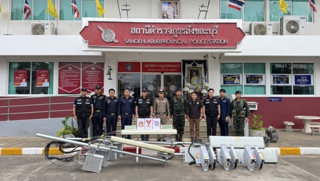 วันที่ 26 ก.พ. 69 พล.ต.ณัฏฐพงศ์ อัศวินวงศ์ ผู้บัญชาการกองพลทหารราบที่ 9 ในฐานะ ผู้บัญชาการกองกำลังสุรสีห์ บูรณาการร่วมกับ น.ส.วริษฐา สงวนเสริมศรี ผู้ว่าราชการจังหวัดกาญจนบุรี เปิดเผยว่า ได้รับแจ้งว่ามีการลักลอบปล่อยสัญญาณโทรศัพท์เคลื่อนที่ ให้กับประเทศเพื่อนบ้านโดยผิดกฎหมาย