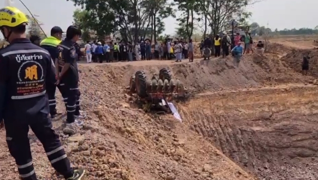 สอบถามนางสาวสุดารัตน์ อายุ 25 ปี ลูกสาวผู้เสียชีวิต เล่าว่า พ่อได้ขับรถไถออกมาปรับหน้าดินขอบสระตั้งแต่ช่วงเช้า โดยสระดังกล่าวเป็นโครงการแหล่งน้ำในไร่นานอกเขตชลประทาน โดยกรมพัฒนาที่ดิน มีความกว้าว 25 เมตร ยาว 30 เมตร ลึก 4 เมตร