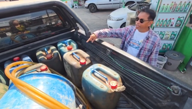 นายชูศักดิ์ อภัยจิตร อายุ 62 ปี ผู้รับเหมาถมดินในอำเภอนางรอง บอกว่า ตอนนี้กังวลมากเพราะไม่รู้ว่าน้ำมันหลังจากนี้จะขาดแคลนหรือไม่ ตนมีอาชีพรับถมดิน หากไม่มีน้ำมันเพียงอย่างเดียว ธุรกิจเดินต่อไม่ได้แน่นอน และยังไม่รู้เลยว่าน้ำมันจะปรับขึ้นราคาอีกเมื่อไหร่ จึงรีบมาซื้อกักตุนไว้เท่าที่จะทำได้