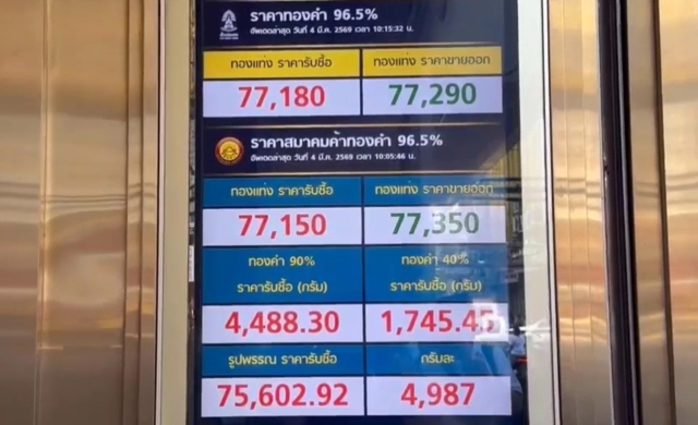 วันที่ 4 มีนาคม 2569 ผู้สื่อข่าวรายงานบรรยากาศการซื้อขายทองคำในย่านเยาวราชตั้งแต่ช่วงเช้าวันนี้เป็นไปอย่างคึกคักผิดปกติ หลังราคาทองคำเปิดตลาดปรับตัวลดลงแรงถึง 1,550 บาท สร้างความฮือฮาในกลุ่มนักลงทุน และประชาชนทั่วไป ที่ติดตามสถานการณ์ราคาทองคำอย่างใกล้ชิด