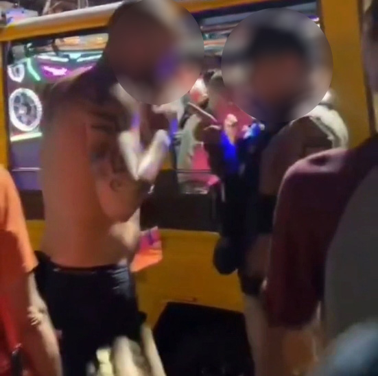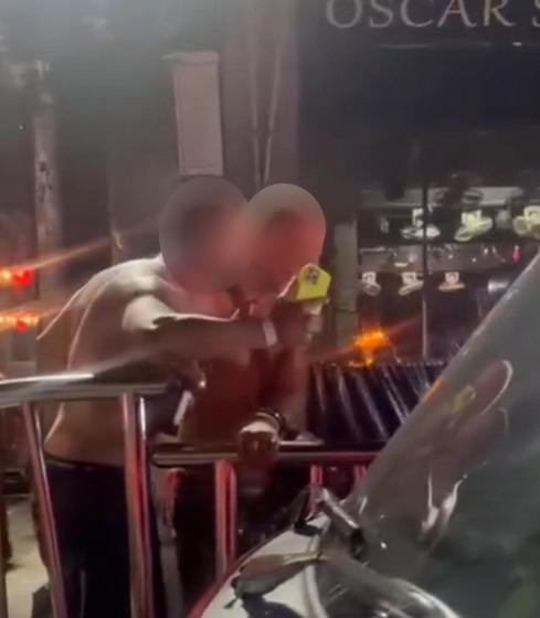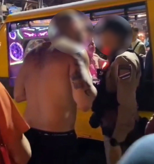 นอกจากนี้ยังมีอีกภาพที่แสดงให้เห็นว่า นักท่องเที่ยวชายรายเดิมมีท่าทีเหมือนกำลังผลักเจ้าหน้าที่ตำรวจ ซึ่งเข้ามาระงับเหตุ และพยายามห้ามปรามเหตุทะเลาะวิวาทดังกล่าว