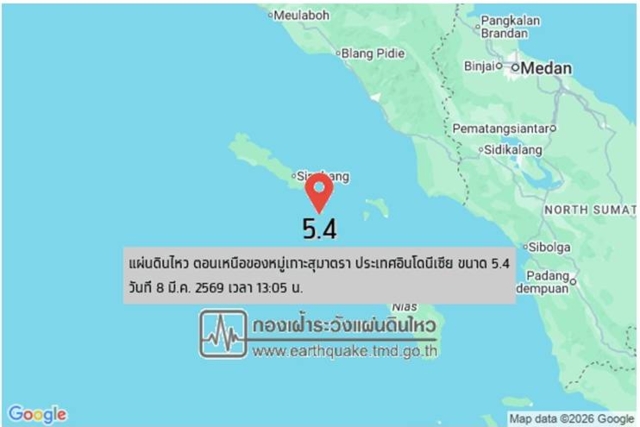 เกิดเหตุแผ่นดินไหวในทะเล ขนาด 5.4 ความลึก 10 กม. บริเวณ ตอนเหนือของหมู่เกาะสุมาตรา ประเทศอินโดนีเซีย ห่าง อ.เมือง จ.สตูล 638 กม. เมื่อเวลา 13.05 น. 8 มี.ค. 69 เกิดเหตุแผ่นดินไหวในทะเล ขนาด 5.4 ความลึก 10 กม. บริเวณ ตอนเหนือของหมู่เกาะสุมาตรา ประเทศอินโดนีเซีย ทางทิศตะวันตกเฉียงใต้ของ อ.เมือง จ.สตูล ประมาณ 638 กม. หากมีข้อมูลเพิ่มเติม ปภ.จะแจ้งให้ทราบต่อไป 4 มีนาคม วันโรคอ้วนโลก สถิติพบคนไทยอ้วนพุ่งเกือบครึ่งประเทศ เข่าลั่น เข่าหลวม สัญญาณเตือนเอ็นไขว้หน้าขาดเสี่ยงข้อเข่าเสื่อมในอนาคต เจาะพฤติกรรม "พันซ์คุง" กับการเนียนนั่งใกล้ลิงรุ่นพี่ด้วยท่าทางนอบน้อม แผ่นดินไหวขนาด 2.9 ต.เขาพัง อ.บ้านตาขุน จ.สุราษฎร์ธานี แผ่นดินไหว! เขย่าตอนเหนือของหมู่เกาะสุมาตรา ประเทศอินโดนีเซีย ขนาด 6.4 แผ่นดินไหว! เขย่า อ.พาน จ.เชียงราย ขนาด 3.1 รับรู้แรงสั่นไหวหลายจุด
