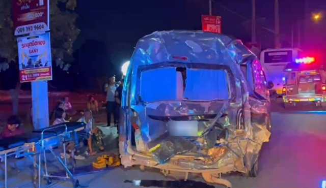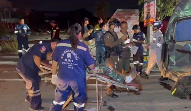 เมื่อเวลา 02.30 น. วันที่ 10 มี.ค. 69 ร.ต.อ.ณัฐพงษ์ บุตรยี่ รองสว.(สอบสวน) สภ.บางเสาธง รับแจ้งอุบัติเหตุรถบรรทุกพ่วงชนท้ายรถตู้ มีผู้ได้รับบาดเจ็บหลายราย เหตุเกิดใกล้เคียงโชว์รูม กม.ที่22 ต.ศีรษะจรเข้ใหญ่ อ.บางเสาธง จ.สมุทรปราการ จึงเดินทางไปตรวจสอบ พร้อมด้วยเจ้าหน้าที่กู้ชีพ และอาสาสมัครมูลนิธิป่อเต็กตึ๊ง