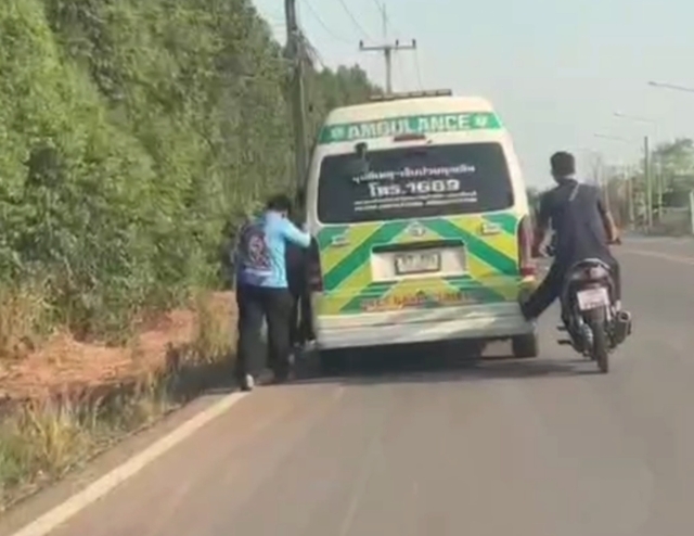 เจ้าหน้าที่จึงพยายามขับไปหาอีก 2 ปั๊ม แต่ปั๊มหนึ่งน้ำมันหมด ส่วนอีกปั๊มปิดการขาย ทำให้ตัดสินใจขับรถไปส่งผู้ป่วยก่อน แต่น้ำมันหมดกลางทาง จึงต้องประสานอาสานำรถอีกคันมารับผู้ป่วยไปส่งต่อ พร้อมช่วยกันเข็นรถพยาบาลออกจากจุดเกิดเหตุ