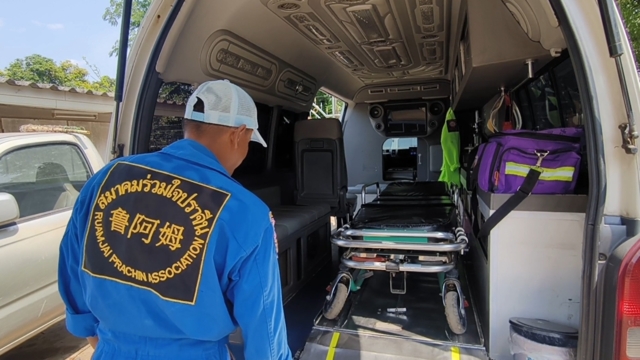 นายตะวัน วงษ์มา เจ้าหน้าที่อาสาสมัครสมาคมร่วมใจปราจีน เปิดเผยว่าก่อนเกิดเหตุได้รับแจ้งผู้ป่วยมีอาการหายใจไม่ทั่วท้องและอ่อนแรง จึงนำรถตู้พยาบาลออกไปรับและส่งโรงพยาบาล เมื่อเสร็จภารกิจได้ออกเหตุช่วยเหลือผู้ป่วยอีกราย ก่อนจะนำผู้ป่วยรายแรกกลับไปส่งบ้าน ระหว่างทางจึงแวะเติมน้ำมัน แต่พบว่าปั๊มน้ำมันไม่มีดีเซลจำหน่าย