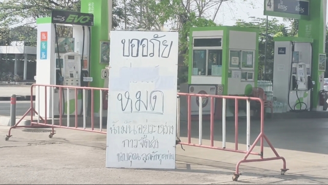 ปั๊มPTใกล้ห้างแมคโครน้ำมันG91,G95และE20หมดแล้ว ส่วนดีเซลคาดว่าจะหมดในช่วงบ่าย โดยรถน้ำมันจะเข้ามาเติมในวันพรุ่งนี้