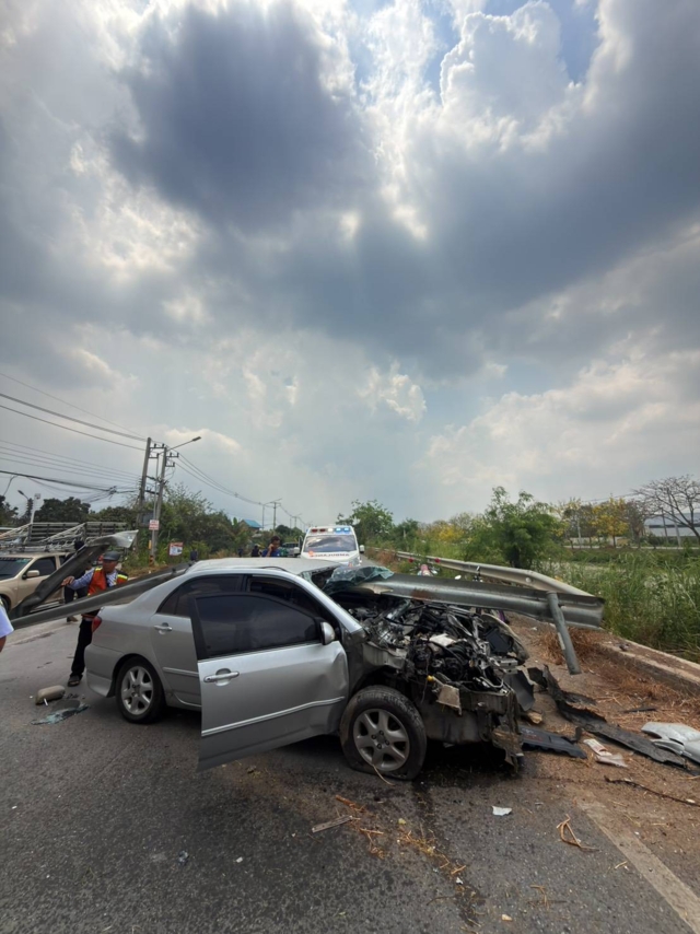 วันที่ 17 มีนาคม 2569 เมื่อเวลา 13.30 น. ร.ต.ท.อนุสรณ์ เวียงสิมา รองสารวัตร(สอบสวน)สภ.คลองหลวง ได้รับแจ้งอุบัติเหตุรถเก๋งพุ่งชนราวเหล็กกั้นถนน(การ์ดเรล)มีผู้เสียชีวิต บริเวณถนนเลียบคลองระพีพัฒน์ ใกล้ซอยเอราวัณ 38 หมู่ 16 ต.คลองสอง อ.คลองหลวง จ.ปทุมธานี จึงรุดไปตรวจสอบพร้อมแพทย์เวรรพ.ธรรมศาสตร์ฯ หน่วยกู้ชีพเทศบาลเมืองท่าโขลงและอาสาสมัครมูลนิธิร่วมกตัญญู