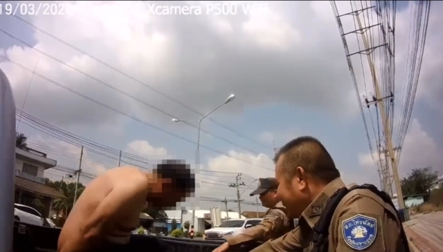 ต่อมาเมื่อเดินมาถึงหน้าร้านของตนมีทั้งรถขยะ และรถโดยสารประจำทางกำลังวิ่งมา ชายคนดังกล่าวได้ตะโกนด่าทอ และทำท่าจะกระโดดเข้าไปขวางรถเพื่อให้รถชน แต่โชคดีที่คนขับรถทั้งสองคันเห็นเหตุการณ์ก่อนจึงหยุดรถหลบทัน
