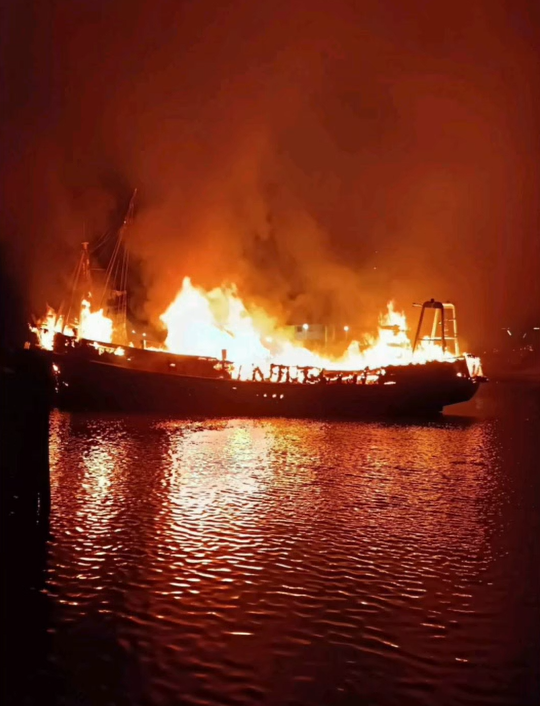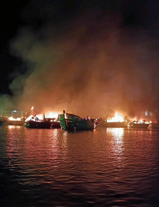 เมื่อถึงที่เกิดเหตุพบเพลิงกำลังลุกไหม้เรือประมงที่จอดเรียงติดๆ กัน บริเวณท่าเรือดังกว่า 10 ลำ จึงระดมฉีดน้ำสกัดเป็นไปด้วยความลำบากนานประมาณ 4 ชม. เนื่องจากมีปัญหากระแสลมพัดแรงตลอดเวลาก่อนที่เพลิงจะสงบ เบื้องต้นพบว่าเพลิงได้ลุกไหม้เรือประมงเสียหายวอด 8 ลำ มูลค่าความเสียหายไม่ต่ำกว่า 10 ล้านบาท ตำรวจสันนิษฐานสาเหตุไฟฟ้าลัดวงจรจากเรือประมงลำใดลำหนึ่งจนลุกไหม้ลาม