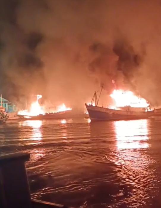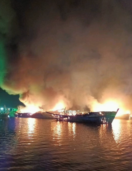 เมื่อเวลา 01.00 น. (20 มี.ค. 2569) ร.ต.อ.อาทร ทองนาค รอง สว.สอบสวน สภ.ขนอม จ.นครศรีธรรมราช รับแจ้งเหตุเพลิงไหม้เรือประมงหลายลำบริเวณท่าเทียบเรือประมงบ้านป่าเลน หมู่ 1 ต.ขนอม อ.ขนอม จ.นครศรีธรรมราช จึงพร้อมด้วย พ.ต.อ.กิตติพงศ์ เทพหนู ผกก.สภ.ขนอม รีบเดินทางไปที่เกิดเหตุพร้อมด้วยรถดับเพลิงจากหน่วยงานและกู้ภัยต่างๆ ในพื้นที่ อ.ขนอม จำนวนหลายคันระดมไปทำการดับเพลิง