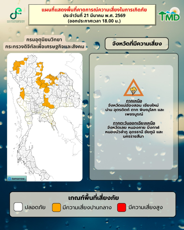 พยากรณ์อากาศ 18:00 น. วันนี้ ถึง 18:00 น. วันพรุ่งนี้
