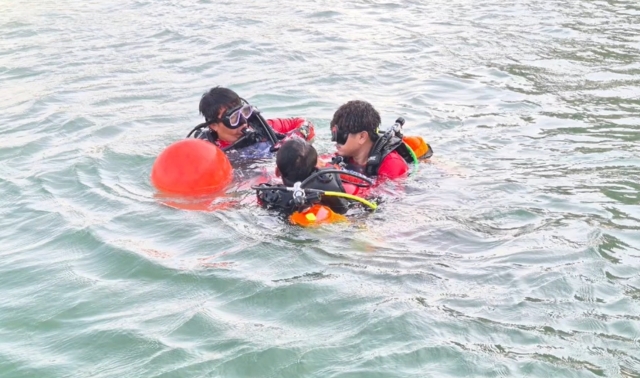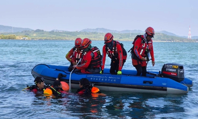 ต่อมาเวลา 12.53 น. ทีมประดาน้ำจำนวน 2 นาย ลงปฏิบัติงาน และเวลา 13.00 น. ทีมประดาน้ำได้ขึ้นกลับฐาน เนื่องจากกระแสน้ำเชี่ยวแรง ไม่สามารถปฏิบัติงานต่อได้อย่างปลอดภัย