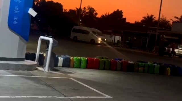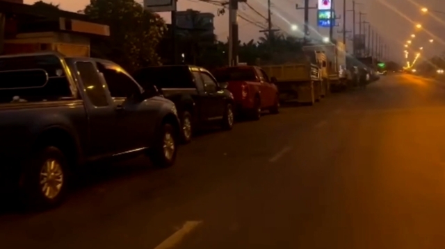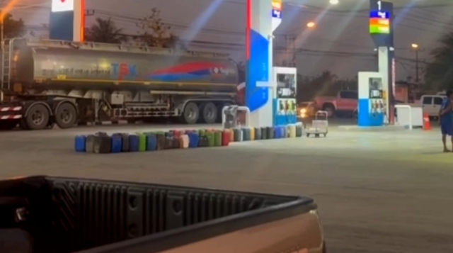 ตอนนี้ชาวบ้านทุกคนต้องมาต่อคิวตั้งแต่หัวรุ่งค ลิปนี้เฉพาะถ่ายภายในปั๊มน้ำมันนะ แต่ข้างนอกปั้มน้ำมันมีรถทยอยมาต่อคิวเรื่อยๆอีกเป็นจำนวนมาก ส่วนแกลลอนน้ำมันที่ชาวบ้านมาต่อคิวตอนนี้ก็อยู่ที่ลำดับประมาณ80-90แล้ว นี่มาตอนช่วง 6 โมงเกือบ100 คิว แล้วถ้าอยากได้คิวแรกแรกก็ต้องเดินทางมาตั้งแต่ตี1-ตี2ซึ่งตอนนี้ทำให้ชาวบ้านไม่ต้องนอนพักผ่อน หรือทำอะไรกันแล้ว อยากให้รัฐบาลนี้ช่วยแก้ปัญหาตรงนี้ให้เร็วที่สุดเพราะตอนนี้ชาวบ้านได้รับความเดือดร้อนทุกอาชีพ'