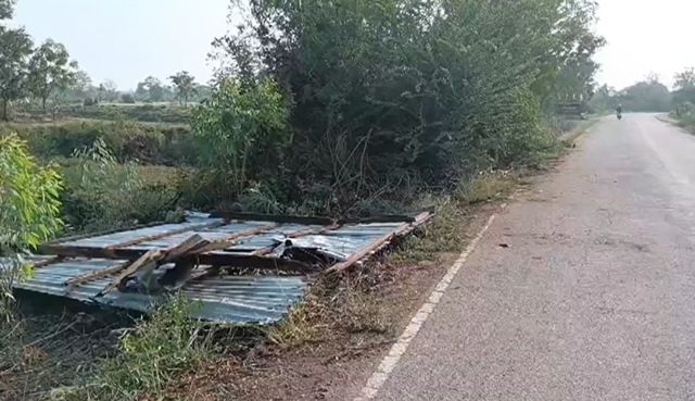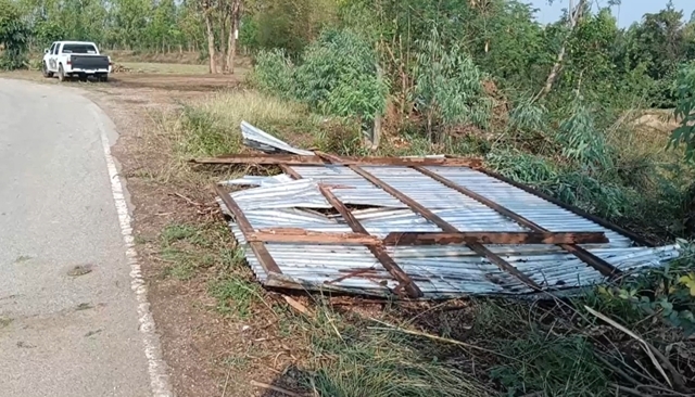 และขณะเกิดลมพายุหมุนพัดถล่ม 2 หมู่ แรงลมพายุได้พัดเอาหลังคากระท่อมนาที่อยู่ข้างถนนสายบ้าน ระหว่างบ้านร่มกล้าไปบ้านวังปลาฝาปลิววอนลอยไปกับแรงลม