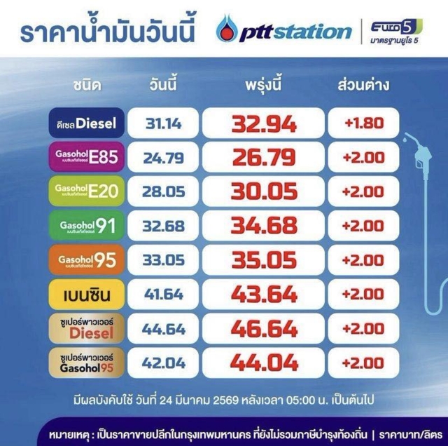 · ดีเซล : ราคา 33.44 บาท/ลิตร