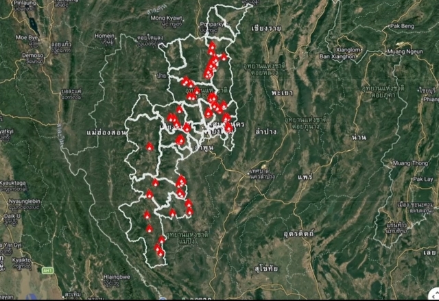 โดยที่ อ.แม่แตง และ อ.เชียงดาว พบไฟป่าหนักที่สุดคือ 29 และ 28 จุด รองลงมาเป็นดอยสะเก็ด 14 จุด แม่วาง 11 จุด สะเมิง 11 จุด หางดง 10 จุด และกระจายตัวไปอีก 9 อำเภอ รวมแล้ว 15 อำเภอด้วยกัน ยอดสะสมตั้งแต่วันที่ 1ม.ค. – 23 มี.ค. 69 ทั้งหมดจำนวน 967 จุด