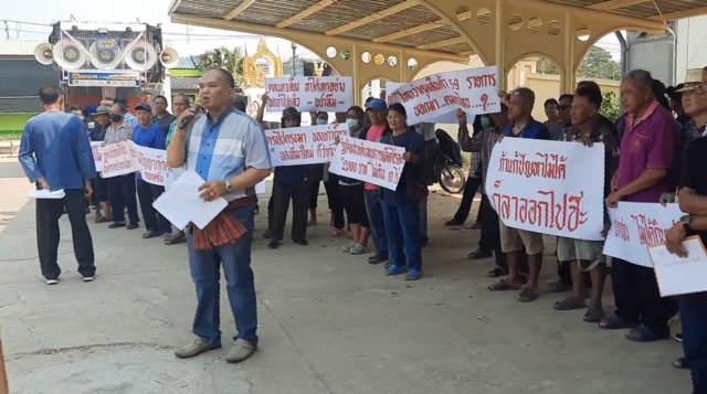 ตัวแทนชาวนาได้ถือป้ายเชิงสัญลักษณ์แสดงออก ถึงปัญหาถ้าแก้ไขไม่ได้ก็ควรลาออกไป โดยมีนายจีรพงษ์ แป้นเพ็ชร ตัวแทนเกษตรกร จากต.นาอิน พร้อมด้วยนายอัษฎางค์ สีหาราชปราชญ์เกษตรของแผ่นดิน สาขาปราชญ์เกษตร ผู้นำชุมชน และเครือข่ายเกษตรกร ต.คอรุม เป็นแกนนำสลับกันปราศรัย กล่าวถึงปัญหาเรื่องข้าวเปลือก เนื่องจากราคาข้าวความชื้น 25% ปัจจุบันอยู่ที่เพียง 6,200-6,300 บาทต่อตันเท่านั้น