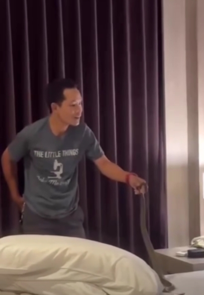 วันที่ 28 มี.ค. 69 เฟซบุ๊กเพจ “เจ๊ม้อย v+” โพสต์คลิปวิดีโอ ซึ่งเป็นเหตุการณ์ที่ห้องพักในโรงแรมแห่งหนึ่ง ที่มีเจ้าหน้าที่พนักงานโรงแมกำลังจับงูเห่า หลังจากลูกค้าโทรแจ้งตั้งแต่ช่วงเช้ามืด พร้อมระบุว่า