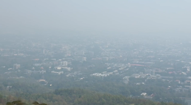 (28 มี.ค. 2569) สถานการณ์หมอกควันจากไฟป่าของ จ.เชียงใหม่ ยังคงวิกฤตหนักต่อเนื่องเข้าสู่วันที่ 3 ที่ค่ามลพิษใน จ.เชียงใหม่ พุ่งสูงเกินค่ามาตรฐานอยู่ในระดับสีส้มและสีแดง โดยตัวเมืองเชียงใหม่เช้านี้ยังคงถูกปกคลุมไปด้วยควันไฟจากไฟป่าสีขาวโพลน เมื่อมองจากมุมสูงจากจุดชมวิวของดอยสุเทพลงมายังตัวเมืองเชียงใหม่พบว่าเมืองเชียงใหม่เหมือนจมอยู่ภายใต้หมอกควันหนาทึบ มองเห็นเพียงรางๆ เป็นภาพของตึกรามบ้านช่อง รวมทั้งสนามบินเชียงใหม่ แต่ไม่สามารถมองเห็นไปไกลข้ามฝั่งแม่น้ำปิงไปทางทิศตะวันออกของเมืองเชียงใหม่ได้ เนื่องจากถูกบดบังด้วยหมอกควันทำให้ทัศนวิสัยลดลงอย่างมาก