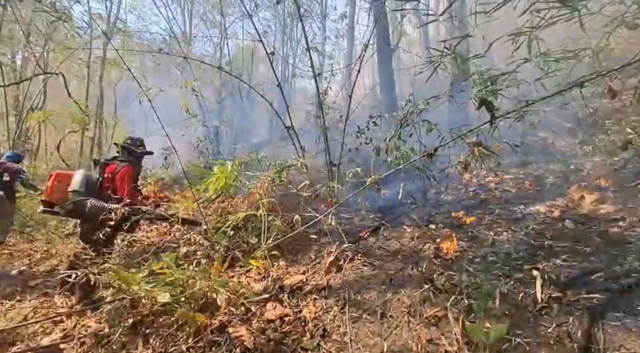 โดเมื่อวานนี้สถานการณ์ไฟป่าที่วิกฤตหนักสุดที่ อ.แม่ออน นายรัฐพล นราดิศร ผู้ว่าราชการจังหวัดเชียงใหม่ พร้อมด้วย นายกริชสยาม คงสตรี ผู้อำนวยการสำนักบริหารพื้นที่อนุรักษ์ที่ 16 เชียงใหม่ ลงพื้นที่อ่างเก็บน้ำห้วยมะนาว เพื่อติดตามการดับไฟป่าบริเวณม่อนสินคู้ ต.แม่วิน อ.แม่วาง หลังเพลิงลุกลามข้ามสันเขาจากพื้นที่บ้านห้วยหยกต่อเนื่องเข้าสู่วันที่ 5 และวันนี้สถานการณ์ทวีความรุนแรงเนื่องจากมีการลอบจุดไฟเพิ่มบริเวณร่องภูเขา ส่งผลให้ไฟลามขึ้นสู่สันเขาที่สูงที่สุดอย่างรวดเร็ว ประกอบกับพื้นที่เกิดเหตุมีความสูงชันมาก หากเดินเท้าต้องใช้เวลานานกว่า 3 ชั่วโมง ทำให้เจ้าหน้าที่ภาคพื้นดินไม่สามารถเข้าถึงจุดเกิดเหตุได้ จึงประสานขอใช้เฮลิคอปเตอร์เคเอ 32 ของกรมป้องกันและบรรเทาสาธารณภัยปฏิบัติการโปรยน้ำดับไฟ และประสานขอรับการสนับสนุนเฮลิคอปเตอร์จากกระทรวงทรัพยากรธรรมชาติและสิ่งแวดล้อม เข้ามาสมทบอีก 1 ลำ เพื่อเร่งคลี่คลายสถานการณ์ไม่ให้ลุกลามไปยังภูเขาลูกอื่น