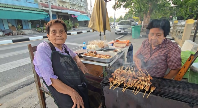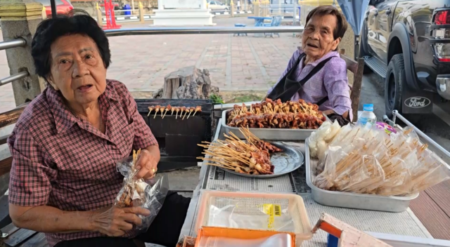 ที่ จ.อุทัยธานี ท่ามกลางวิกฤตราคาน้ำมันที่แพงขึ้นสูงลิ่ว ส่งผลให้สินค้าราคาแพงและส่งผลกระทบต่อปากท้องประชาชน ร้านหมูปิ้งเตาถ่านสูตรโบราณเจ้าดัง บริเวณสวน รศ. 200 ปี ยังคงยืนหยัดเคียงข้างลูกค้า โดย คุณยายบุญยืน หรือ "ยายเล็ก" อายุ 83 ปี และ คุณยายสุมณี หรือ "ยายน้อย" อายุ 81 ปี สองพี่น้องเจ้าของร้าน เปิดเผยถึงความยากลำบากในการแบกรับต้นทุนที่ปรับตัวสูงขึ้นอย่างต่อเนื่อง แต่ยังยืนยืนจะขายในราคาเดิมจนกว่าจะสู้ไม่ไหว