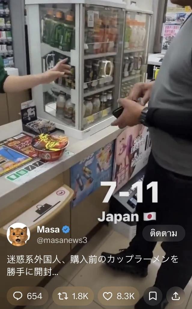 เรื่องเกิดจากวันก่อน แอคเคาท์ Masanews ซึ่งเป็นแอคเคาท์แนวเล่าข่าวของญี่ปุ่น ลงคลิป คนไทยต้มมาม่าในร้านสะดวกซื้อที่ญี่ปุ่น โดยคนไทยคนนั้นแกะถ้วยบะหมี่กึ่งสำเร็จรูปกดเติมน้ำร้อน ก่อนจ่ายเงิน (ซึ่งบ้านเราทำแบบนี้กันเป็นเรื่องปรกติ แต่ที่ ตปท. ทำไม่ได้นะจ๊ะ)