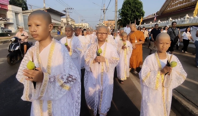 ก่อนนาคทั้งหมดเดินเวียนรอบโบสถ์ 3 รอบ และประกอบพิธีทางศาสนา กระทั่งเวลา 10.00 น. ได้ทำการบรรพชาสามเณรครบทั้ง 106 รูปเป็นที่เรียบร้อย