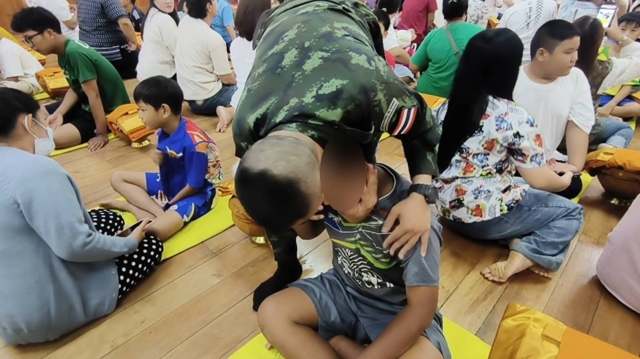 ต่อมามีพี่ทหารที่เข้าร่วมพิธี ได้เข้ามาสวมบทเป็นผู้ปกครองชั่วคราว กอดปลอบและให้กำลังใจเด็กชายคนดังกล่าว จนสามารถคลายความเศร้าลงได้ สร้างความประทับใจให้กับผู้ร่วมงานเป็นอย่างมาก