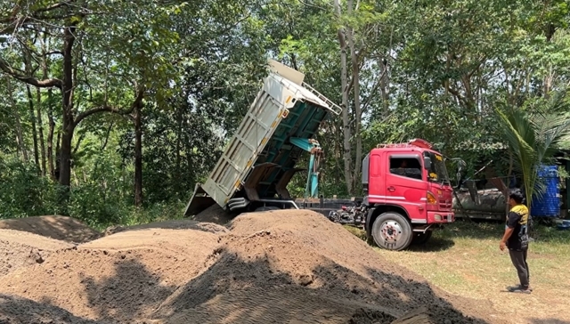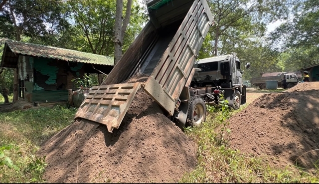 วันที่ 3 เม.ย. 69 ผู้สื่อข่าวรายงานว่า ที่ฐานปฏิบัติการบ้านชำรากส่วนล่าง อ.เมือง จ.ตราด กลุ่มรถดัมพ์สายบุญ จากหลายพื้นที่ใน จ.ตราด ได้นำรถบรรทุกทรายเดินทางเข้ามามอบทรายให้กับเจ้าหน้าที่ทหารประจำแนวชายแดน เพื่อนำไปกรอกใส่กระสอบสำหรับสร้างบังเกอร์ เสริมความมั่นคงตามแนวชายแดนไทย–กัมพูชา