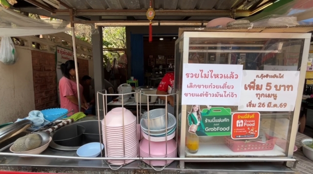 เจ้าของร้าน ระบุว่า ต้นทุนหลักที่เพิ่มขึ้นอย่างชัดเจนคือราคาไก่สด ซึ่งขยับจากเดิมกิโลกรัมละ 80 บาท เป็นกิโลกรัมละ 90 บาท ขณะที่ราคาข้าวสารก็เริ่มทยอยปรับขึ้นมาระยะหนึ่งแล้ว ส่งผลให้ทางร้านต้องปรับราคาขายเพิ่มเมนูละ 5 บาท พร้อมติดป้ายข้อความดังกล่าวเพื่อสะท้อนความรู้สึกของผู้ค้ารายย่อยที่กำลังได้รับผลกระทบ