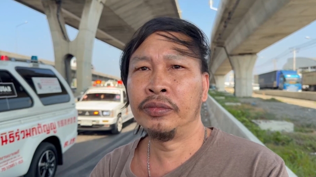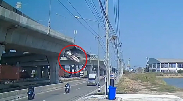 สอบถาม นายจิม จิตซื่อ อายุ 48 ปี คนขับรถเก๋งสีแดง เล่านาทีเฉียดตายให้ฟังว่า ตนเองขับรถมาจากพัทยา กำลังมุ่งหน้าเข้าบางพลี โดยขับมาในเลนซ้ายของช่องทางด่วน พอถึงที่เกิดเหตุ ได้ยินเสียดังสนั่นคล้ายกับมีรถชนอะไรบางอย่าง หลังจากนั้นก็สังเกตเห็นว่ามีสิ่งของกระเด็นตกจากสะพานด้านบน จึงตัดสินใจหักออกขวา จนทำให้รอดหวุดหวิดจากการถูกรถหล่นลงมาทับดังกล่าว