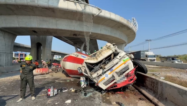 วันที่ 3 เมษายน 2569 เมื่อช่วง เวลา 14.50 น. เจ้าหน้าที่ตำรวจ สภ.บางบ่อ จังหวัดสมุทรปราการ ได้รับแจ้งมีอุบัติเหตุรถโม่ปูนเสียหลักตกจากสะพานกลับรถ ทำให้มีผู้ได้รับบาดเจ็บอาการสาหัส เหตุเกิดบนถนนเทพรัตน ( ถนนบางนา-ตราด ) ขาเข้า ช่องทางด่วน หลักกิโลเมตรที่ 31 ขามุ่งหน้ากรุงเทพฯ ตำบลบางบ่อ อำเภอบางบ่อ จังหวัดสมุทรปราการ หลังรับแจ้งจึงประสาน กู้ชีพโรงพยาบาลบางบ่อ พร้อม เจ้าหน้าที่มูลนิธิร่วมกตัญญู เดินทางไปตรวจสอบและช่วยเหลือ