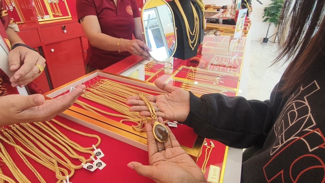 วันที่ 4 เม.ย. 69 ผู้สื่อข่าวรายงานบรรยากาศในพื้นที่นิคมอุตสาหกรรม 304 ต.ท่าตูม อ.ศรีมหาโพธิ จ.ปราจีนบุรี พบว่า กลุ่มหนุ่มสาวโรงงานจำนวนมาก ต่างพากันหันมาซื้อ “ทองเกือบแท้” หรือทองวิศวกรรม เพื่อนำไปสวมใส่ในช่วงเทศกาลสงกรานต์ หลังราคาทองคำรูปพรรณพุ่งสูงถึงบาทละกว่า 73,000 บาท