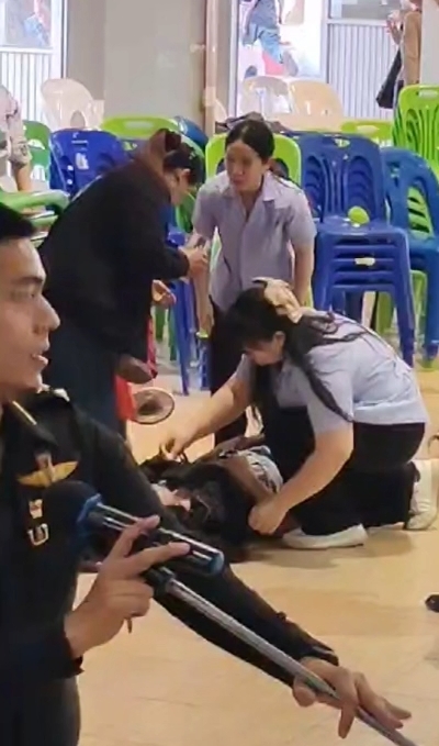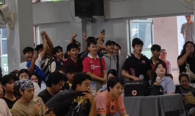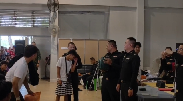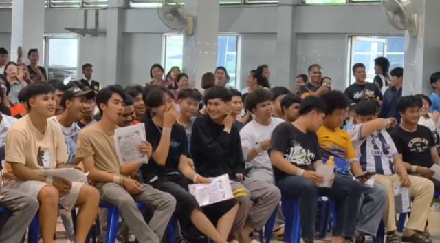 ชายหนุ่มที่มีแฟนสาวนั่งลุ้นอยู่ด้านหลังอย่างใจจดใจจ่อ เป็นคนแรกที่เดินเข้าไปล้วงไหเลือกสลาก 1 ใน 2 ใบ ยื่นให้เจ้าหน้าที่ทหารขานใบ วินาทีนั้นกองเชียร์ทั้งสองฝ่ายต่างเงียบสนิท จนแทบไม่ได้ยินเสียงลมหายใจ กระทั่งนายทหารขานว่า”แดง” เสียงเฮอีกฝั่งก็ดังลั่นหอประชุม ตรงกันข้ามฝ่ายที่โดนใบแดง หญิงสาวแฟนของชายผู้นั้น ถึงกับช็อกเป็นลมล้มตกจากเก้าอี้ เจ้าหน้าที่พยาบาล รพ.ท่าอุเทน ต้องรีบเข้าช่วยเหลือปฐมพยาบาล และนำส่งให้แพทย์ตรวจอาการทันที