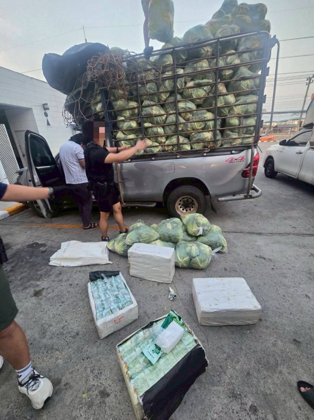 กระทั่งช่วงเช้าของวันที่ 4 เม.ย. 2569 เจ้าหน้าที่พบความเคลื่อนไหวของรถยนต์เป้าหมาย เป็นรถกระบะคอก ยี่ห้อโตโยต้า รีโว่ ติดแผ่นป้ายทะเบียนจังหวัดพิษณุโลก บรรทุกผักสดมาเต็มคันรถ ขับออกมาจากบริเวณแนวชายแดน ชุดสืบสวนจึงได้ขับรถสะกดรอยติดตามอย่างใกล้ชิด จนถึงเวลาประมาณ 18.20 น. รถคันดังกล่าวได้แวะจอดพักบริเวณปั๊มน้ำมัน LPG ต.เชียงรากน้อย อ.บางปะอิน จ.พระนครศรีอยุธยา เจ้าหน้าที่จึงตัดสินใจแสดงตัวเข้าตรวจค้นทันที