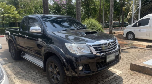 จากการตรวจสอบพบรถกระบะ Toyota Hilux Vigo สีดำ ทะเบียนกรุงเทพมหานคร สภาพภายนอกติดตราสัญลักษณ์กรมอุทยานแห่งชาติ สัตว์ป่า และพันธุ์พืช บริเวณข้างประตูทั้งสองด้าน และติดตรากระทรวงทรัพยากรธรรมชาติและสิ่งแวดล้อมที่กระจังหน้า รวมถึงมีการติดตั้งเสาวิทยุบนหลังคาเพื่อให้ดูคล้ายรถยนต์ราชการ