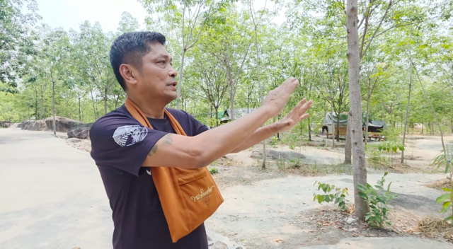 ขณะที่ ชูษี เชิญยิ้ม ศิลปินตลกชื่อดัง ได้พาผู้สื่อข่าวลงพื้นที่ดูพื้นที่จริง ที่ถูกกล่าวหาว่ามีการบุกรุกพื้นที่ป่าสงวนในการปลูกสร้างกุฎิและศาลา ซึ่งจากการสังเกตพบว่าพื้นที่มีลักษณะเป็นลานหิน มีต้นยางพาราปลูกอยู่ตลอดพื้นที่ โดยต้นยางพาราแต่ละต้นสูง 4-6 เมตร คาดว่ามีอายุมากกว่า 5-10 ปี แทรกด้วยกุฏิไม้ไผ่มุงหญ้าคาแทรกตามลานหิน กระจายทั่งพื้นที่ ไม่มีต้นไม้ใหญ่ลักษณะที่เป็นป่าแต่อย่างใด