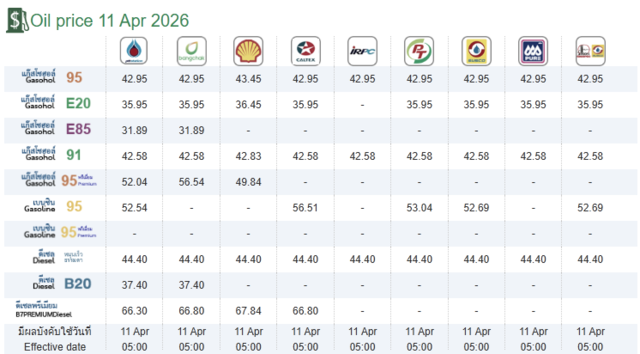 - แก๊สโซฮอล์ 95 : ราคา 42.95 บาท/ลิตร