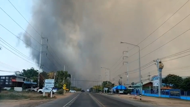 วันที่ 12 เม.ย. 69 ที่จ.นครราชสีมา ผู้สื่อข่าวรายงานว่า ได้เกิดเหตุเพลิงไหม้ที่โรงงานน้ำตาลพิมาย ต.หนองระเวียง อ.พิมาย จ.นครราชสีมา ซึ่งจากภาพจะเห็นกลุ่มควันสีดำขนาดใหญ่พวยพุ่งขึ้นฟ้าเป็นจำนวนมาก กลุ่มควันดังกล่าวได้ปกคลุมถนนบริเวณโดยรอบโรงงาน