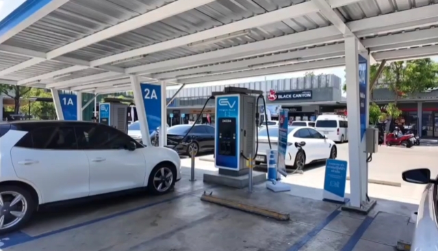 เหตุเกิด ที่บริเวณสถานีชาร์จรถไฟฟ้า ปั๊มน้ำมันแห่งหนึ่ง หมู่ 12 ต.หนองปรือ อ.บางละมุง จ.ชลบุรี ขณะที่ผู้โพสต์ ยังระบุข้อความว่า ”อากาศร้อน แต่ใจเย็นๆกันนะครับ @11/4“