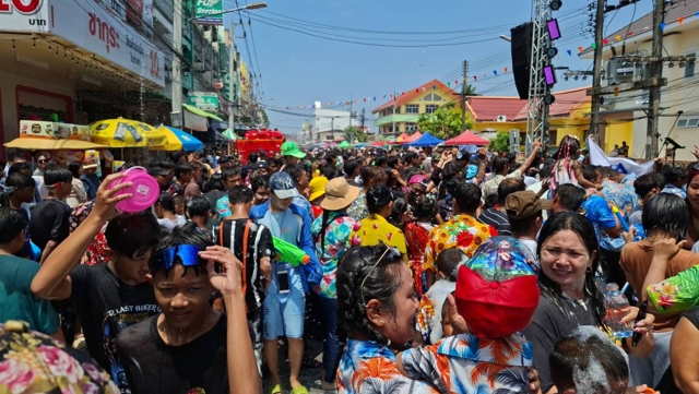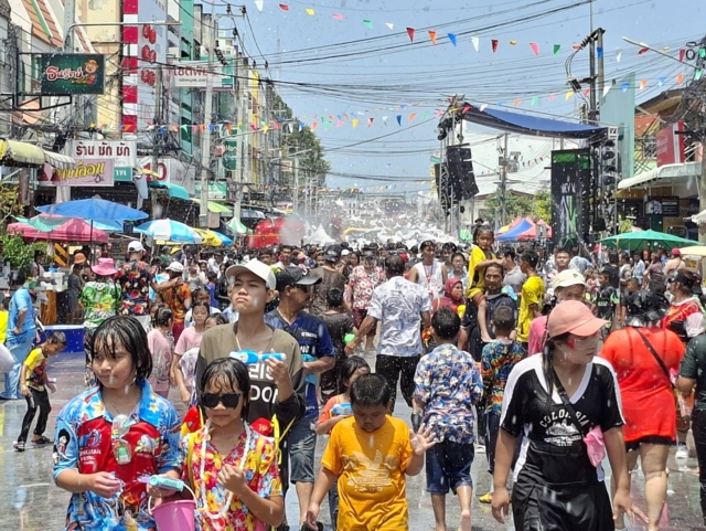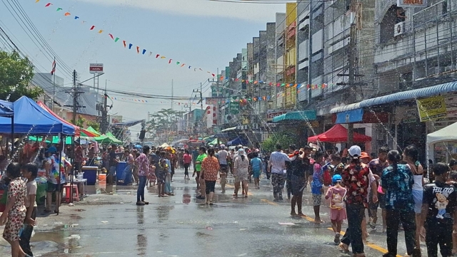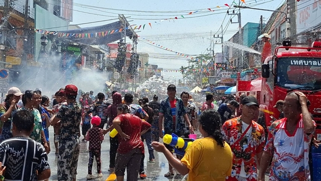 โดยปีนี้รถจะไม่วนสาดน้ำกัน แต่จะมาจอดและเดินลงมาเล่นน้ำบนถนนข้าวยำแทน ทำให้ริมถนนมีประชาชนมาจอดรถเพื่อเล่นน้ำกันอย่างสนุกสนาน