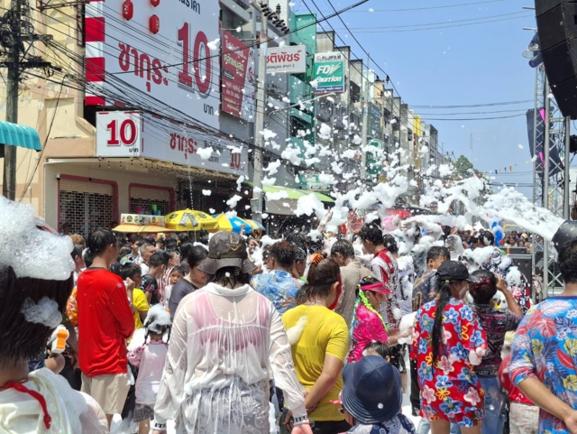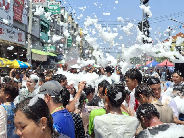 นอกจากนี้ ภายในพื้นที่ยังมีการจัดกิจกรรมสร้างความบันเทิงอย่างหลากหลาย ทั้งการเปิดเพลง การจัดปาร์ตี้โฟมในบางจุด ส่งผลให้บรรดาหนุ่มสาวออกมาเต้นรำและเล่นสาดน้ำกันอย่างสนุกสนาน ท่ามกลางบรรยากาศแห่งความสุขและรอยยิ้ม สะท้อนถึงสีสันของเทศกาลสงกรานต์ในจังหวัดชายแดนภาคใต้ที่กลับมาคึกคักอีกครั้งในปีนี้ ทามกลางเจ้าหน้าที่ตำรวจคอยดูแลรักษาความปลอดภัยตลอดงานด้วย