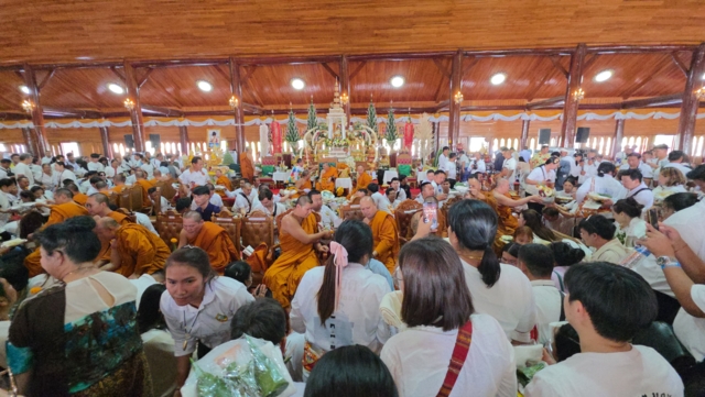 วันที่ 13 เม.ย. 69 ที่วิหารไม้พระราชวัชรธรรมโสภณ วัดพระธาตุหมื่นหิน บ้านทุ่งกระเดา ต.กุดปลาค้าว อ.เขาวง จ.กาฬสินธุ์ คณะศิษยานุศิษย์และพุทธศาสนิกชนได้ร่วมกันจัดพิธีไหว้ครูปาธยาย กตัญญูบูชาพระคุณ พระเทพวัชรธรรมโสภณ (หลวงปู่ศิลา สิริจนฺโท) โดยจัดขึ้นระหว่างวันที่ 12 – 13 เม.ย. 69 พบมีสาธุชนหลั่งไหลเข้าร่วมพิธีนับหมื่นคนจนแน่นวัด