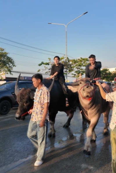 ผู้สื่อข่าวรายงาน วันที่ 14 เมษายน 2569 นาย เอก บางแสน พร้อมกับเพื่อน ได้ขี่ควายรูปงาม เล่นน้ำสงกรานต์บางแสน ถนนข้าวหลาม ตำบลแสนสุข อำเภอเมืองชลบุรี จังหวัดชลบุรี เป็นการสร้างสีสันในช่วงเทศบาลสงกรานต์ ประชาชนให้ความสนใจเป็นอย่างมาก