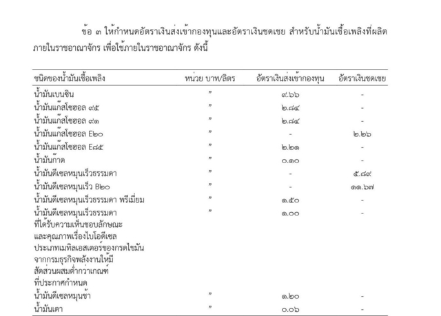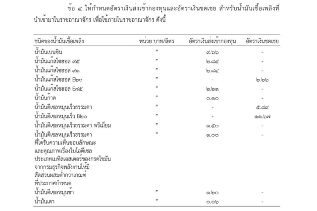 ด้วยคณะกรรมการนโยบายพลังงานแห่งชาติได้กำหนดกรอบนโยบายการบริหารกองทุนน้ำมันเชื้อเพลิงภายใต้พระราชบัญญัติกองทุนน้ำมันเชื้อเพลิง พ.ศ. ๒๕๖๒ เพื่อให้คณะกรรมการบริหารกองทุนน้ำมันเชื้อเพลิงสามารถบริหารกองทุนน้ำมันเชื้อเพลิงเป็นไปอย่างต่อเนื่องโดยให้ราคาน้ำมันเชื้อเพลิงอยู่ในระดับที่เหมาะสม โดย ข้อ ๓.๒.๑ (๑) “ข. เหตุการณ์ที่ทำให้ราคาน้ำมันขายปลีกในประเทศปรับตัวสูงขึ้น อยู่ในระดับที่เกินกว่าระดับราคาที่เหมาะสม มากกว่า ๓๐ บาทต่อลิตร” ข้อ ๓.๓.๑ เป็นการบรรเทาผลกระทบต่อการดำรงชีพของประชาชน และหรือชะลอการขาดแคลนและไม่เพียงพอต่อการใช้ภายในประเทศ อันจะเป็นประโยชน์ต่อความมั่นคงด้านพลังงานและเศรษฐกิจของประเทศ ข้อ ๓.๓.๒ เป็นมาตรการระยะสั้นและคงหลักการสะท้อนมูลค่าที่แท้จริง หลีกเลี่ยงการกระทบต่อกลไกตลาดเสรี ข้อ ๓.๓.๓ คำนึงถึงภาวะความผันผวนของราคาต้นที่แท้จริง แนวโน้มตลาดโลก หลีกเลี่ยงการชดเชยเพื่อช่วยเหลือกลุ่มใดกลุ่มหนึ่ง ไม่ควรอุดหนุนราคาน้ำมันเชื้อเพลิงข้ามกลุ่ม (Cross Subsidies) อาศัยอำนาจตามมาตรา ๑๔ (๔) มาตรา ๒๗ มาตรา ๒๙ มาตรา ๓๑ มาตรา ๓๒ มาตรา ๕๔ และมาตรา ๕๕ แห่งพระราชบัญญัติกองทุนน้ำมันเชื้อเพลิง พ.ศ. ๒๕๒๖๒ คณะกรรมการบริหารกองทุนน้ำมันเชื้อเพลิงประกาศกำหนดอัตราเงินส่งเข้ากองทุน อัตราเงินชดเชย อัตราเงินคืนจากกองทุนและอัตราเงินชดเชยคืนกองทุนสำหรับน้ำมันเชื้อเพลิง ดังต่อไปนี้
